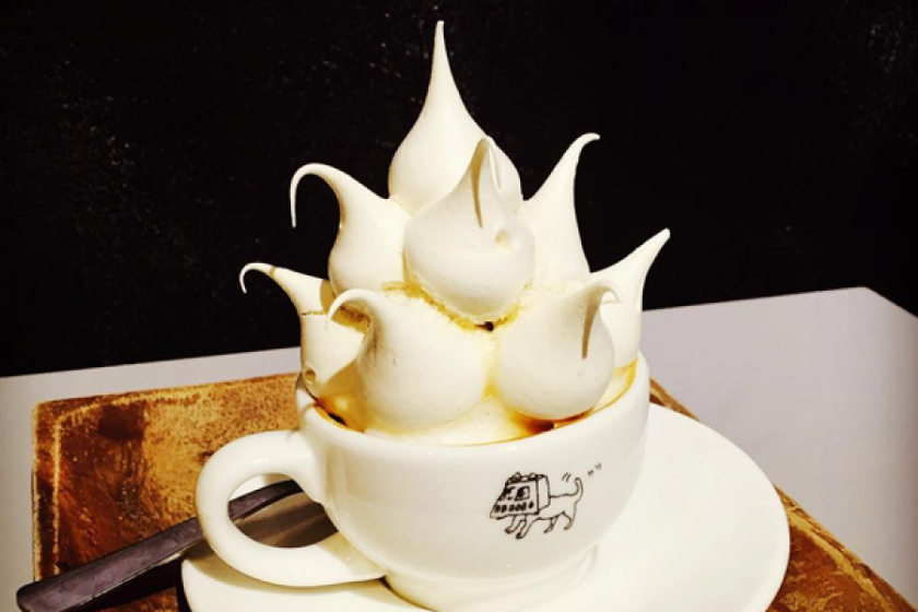 Что же такое меренга? Это сладкая масса, приготовленная из яичных белков и сахара, которая, в нашем случае, аккуратно укладывается на кофе и немного плавится, создавая необычную текстуру.