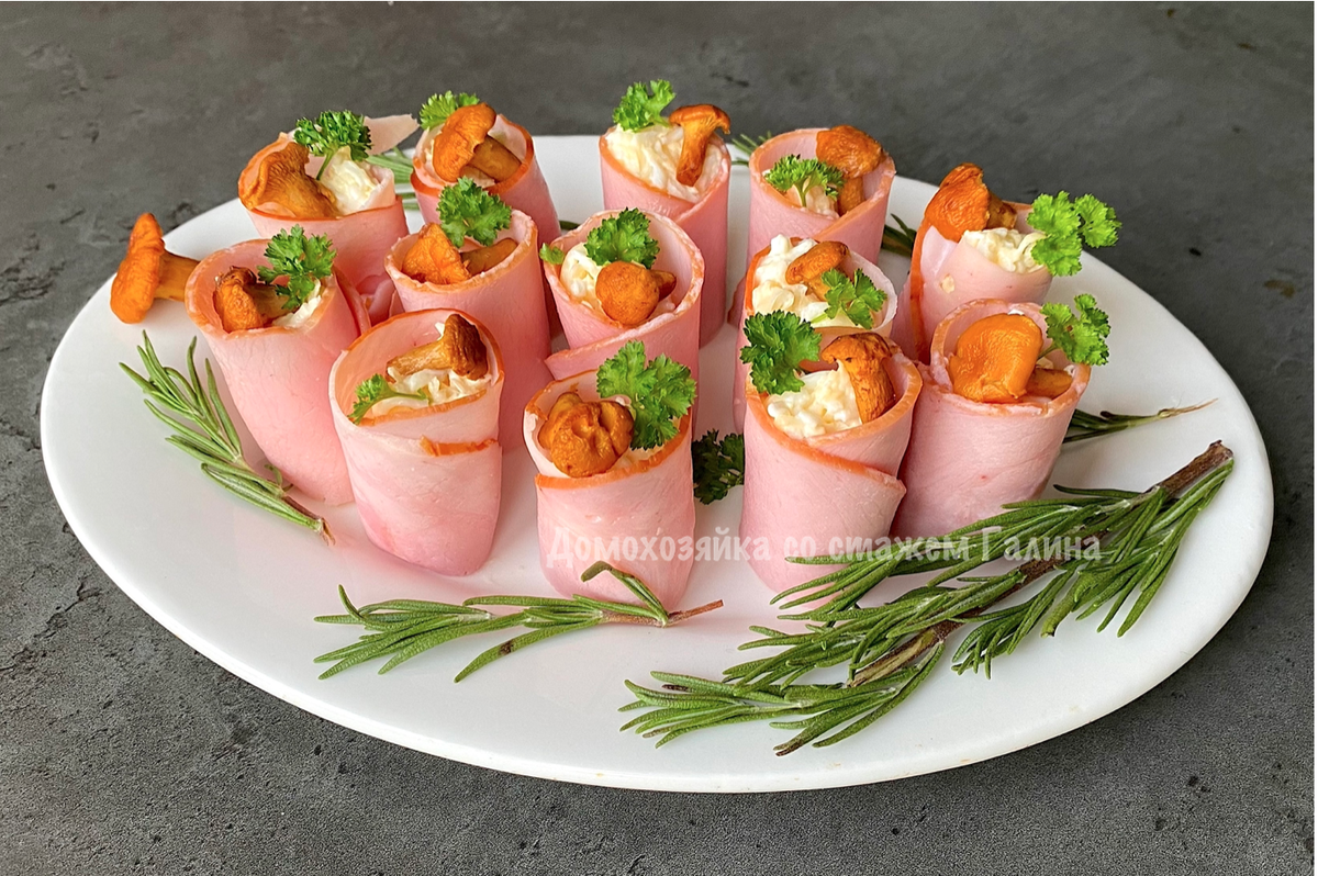 Готовые рулетики из ветчины с сыром, грибами и орехами можно подавать к столу, вызывая восторг у гостей. Приятного аппетита!