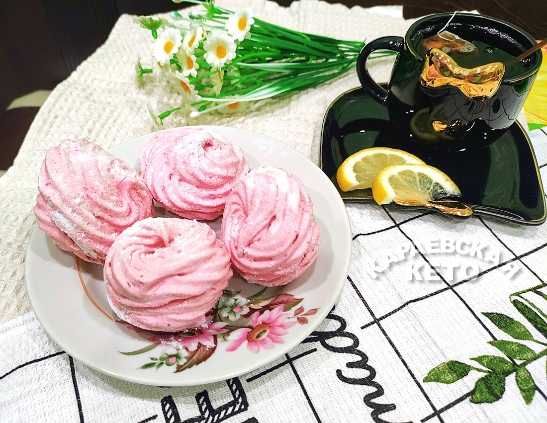 Когда сироп будет готов, его тонкой струйкой влить в белковую массу, не прекращая взбивание. Как только зефир начнет густеть, быстренько переложить его в кондитерский мешок и отсадить на подготовленную поверхность. После этого обсыпать зефир эритритом и отправить в холод. Зефир будет готов через несколько часов и со временем станет еще слаще.