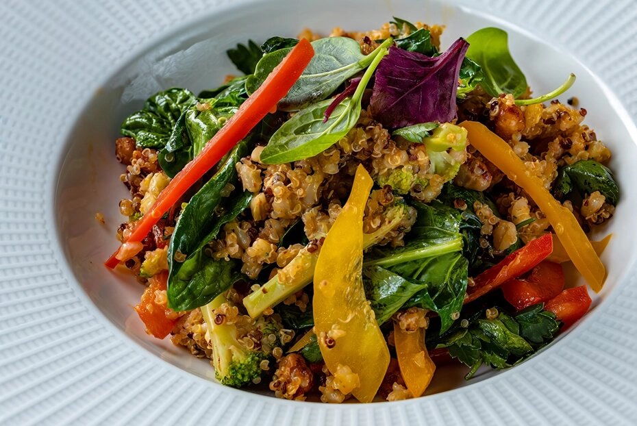 Салат заправляется многослойным соусом, в котором царит кокосовое молоко, соевый соус и кинза, а завершающим аккордом служит острый соус кимчи. Овощи можно выбрать на свой вкус, делая его идеальным вариантом для всех, кто хочет разнообразить свой рацион. Это необычное блюдо может замещать даже традиционный кусок бифштекса на вашем столе.