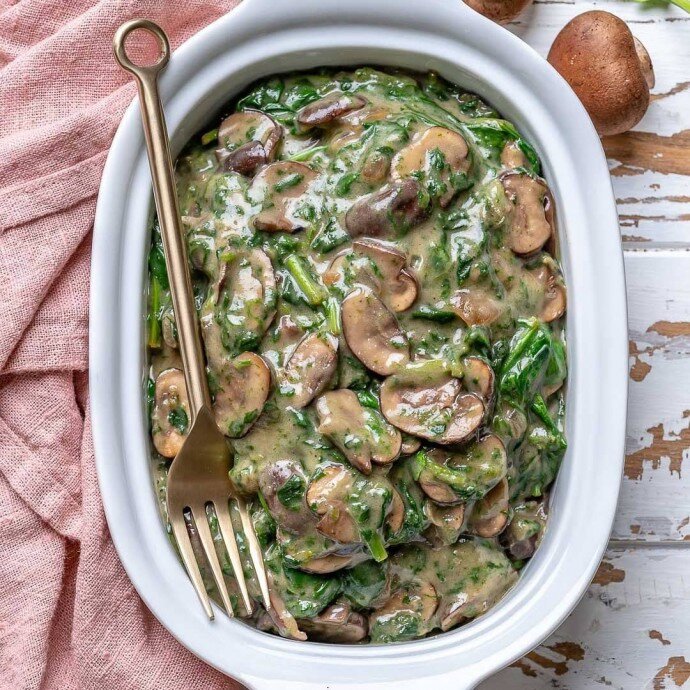 Восхитительное сочетание: грибы со шпинатом в сливочном соусе