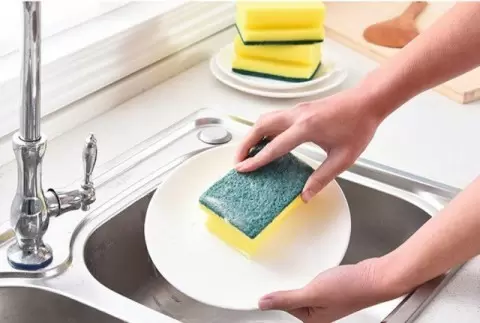 - Не смешивайте губки, используйте разные для посуды и чистки столешниц.