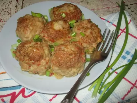Чтобы голубцы получились пышными и нежными, в полученную массу добавляют соду. Сформированные из теста шарики обваливаются в муке и укладываются в предварительно разогретую сковороду. На следующем этапе их заливают молоком.