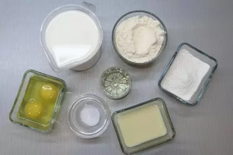 Тесто перемешивается до гладкой консистенции без комочков. Когда база готова, добавляется оставшееся молоко и растительное масло; в итоге тесто должно быть довольно жидким.