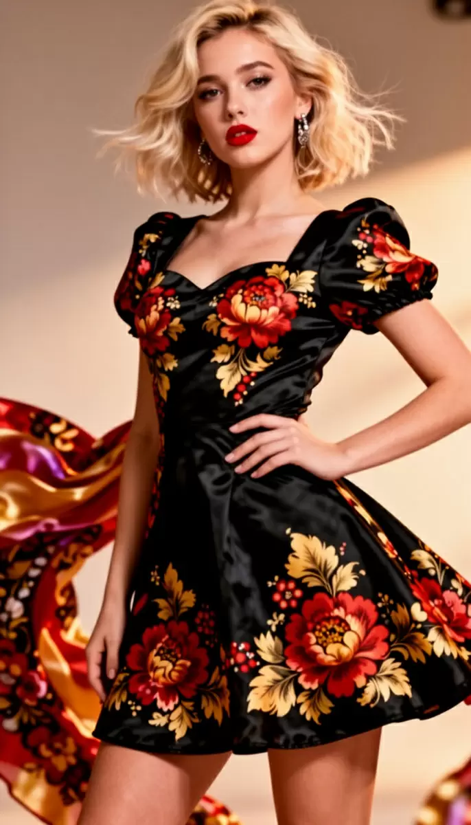 Повод: Съёмка для коллекции, основанной на жостовской росписи, которая смело соединяет народное искусство с современными модными трендами.