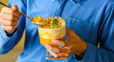 Десерт «Двойное манго» — это истинный тропический источник вдохновения для любителей сочных фруктов и нежных сладостей. Сочетая два изысканных слоя, он превращает обычный десерт в произведение искусства, способное украсить любой праздничный стол.
