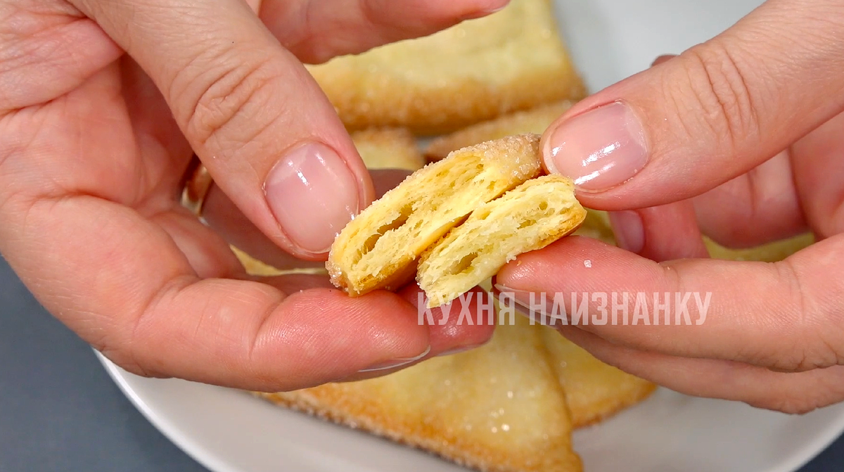 Кроме того, слоеное тесто можно просто раскатать до толщины 3-4 мм, опустить в сахар с одной стороны и запекать в духовке 10 минут при 180 градусах. Это станет отличным дополнением к чаю!
