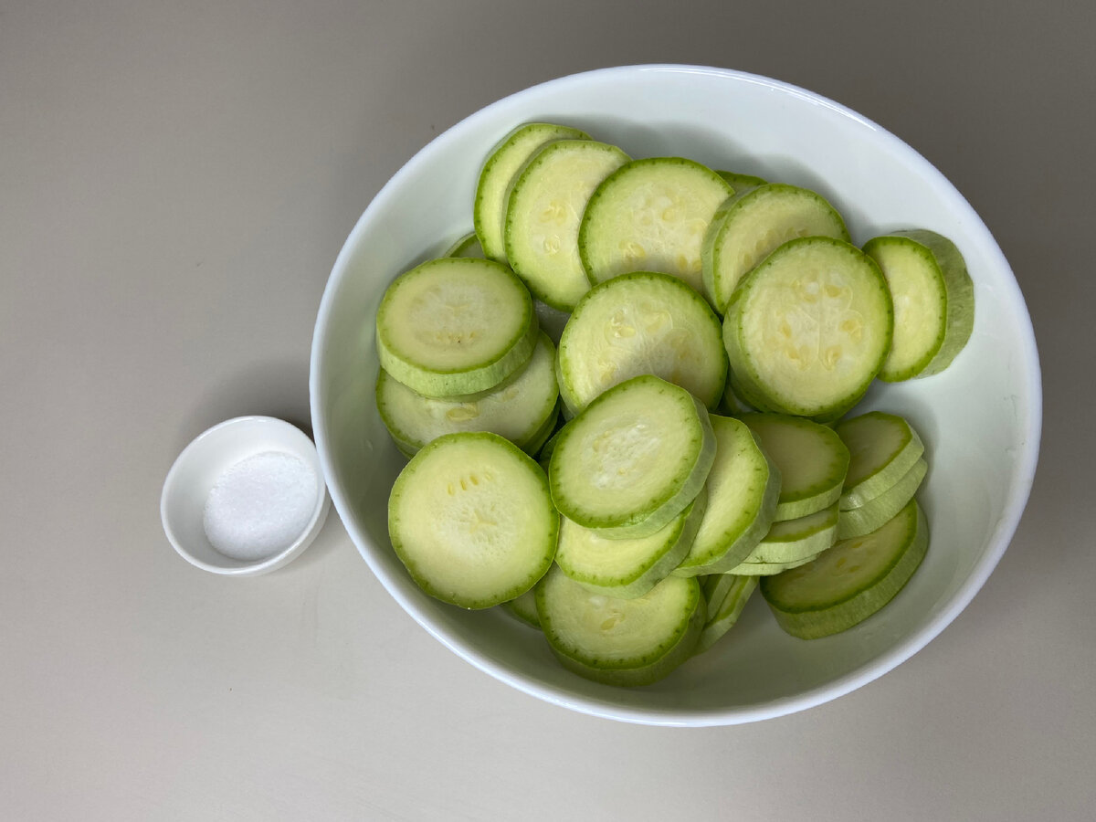Начните с нарезки кабачков на тонкие кружочки. Посолите их и оставьте на 10 минут, чтобы выделился сок. Молодые кабачки можно готовить с кожурой, что сделает блюдо еще более ароматным.