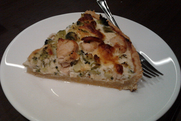 Приготовление теста: Растопите сливочное масло (не перегревайте), добавьте к нему сахар и чайную ложку соли. Смешайте с двумя яйцами. Постепенно вводите просеянную муку, замешивая тесто. Уберите его в холодильник на час.Приготовление начинки: Нарежьте куриное филе кубиками и обжарьте на сковороде до готовности. Брокколи разделите на небольшие соцветия.Приготовление заливки: Взбейте яйца для заливки, добавьте сливки, мускатный орех, соль и перец. Вмешайте тертый сыр.Выпекание: Раскатайте тесто в пласт, уложите его в форму, проткните вилкой и накройте бумагой для выпечки. Застелите бобами и выпекайте 5 минут при 180 градусах. Удалите бумагу и бобы, выложите куриную грудку и брокколи, залейте яйцом с сыром. Выпекайте еще 30 минут.Поделитесь этим замечательным рецептом с друзьями в социальных сетях и наслаждайтесь общим приготовлением!
