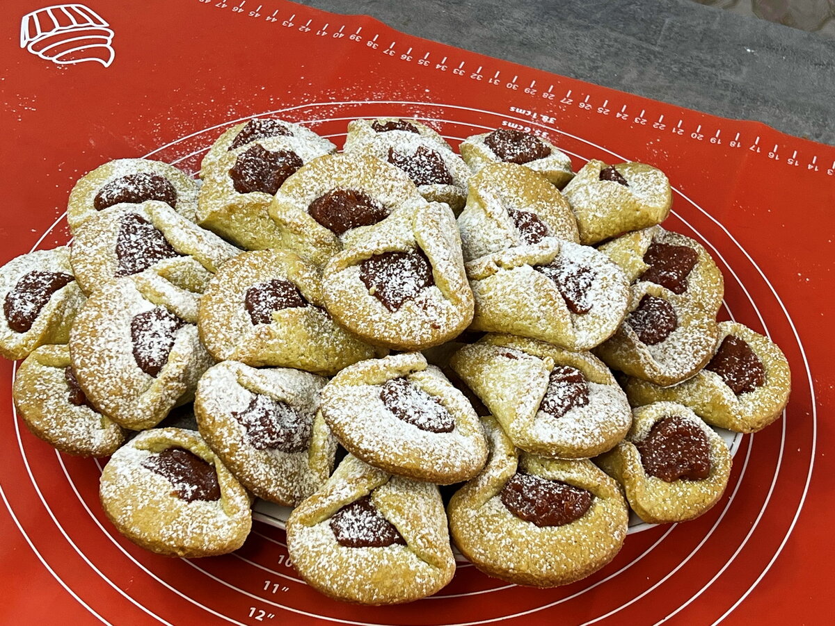 В центр каждого кружка выкладывается начинка, после чего края теста соединяются, создавая печенье. Готовые заготовки необходимо перенести на противень и выпекать при температуре 180 градусов всего 10 минут. Аромат, который наполнит кухню, просто невероятен!