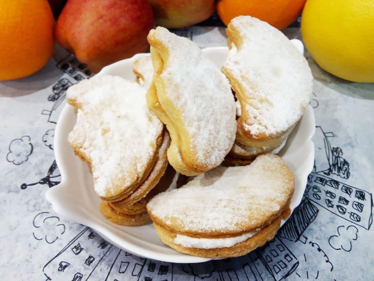 7. После выпекания аккуратно соединить печенье с начинкой, смазанной между двумя половинками. При желании, посыпьте сахарной пудрой перед подачей.