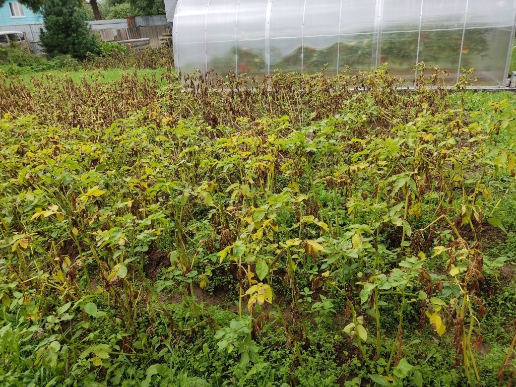 Сейчас проводить обработку растений против фитофторы — дело бесполезное. Словно в известной поговорке: "поздно пить боржоми, если почки отвалились". Важно отметить, что некоторые обработанные участки не показывают характерных признаков фитофтороза, таких как шершавые пятна на клубнях.