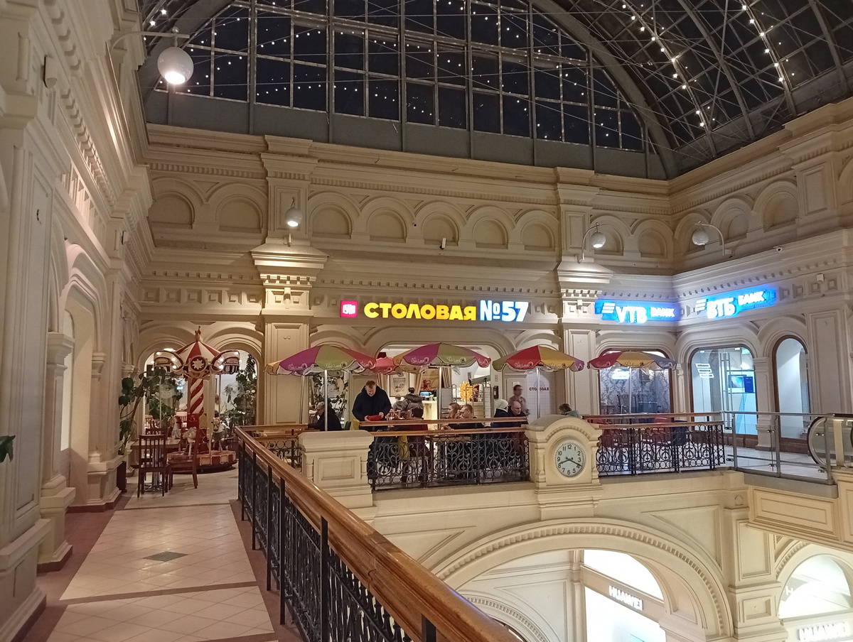 На третьем этаже третьей линии ГУМа находится Столовая №57 — настоящая живая память о советском общепите. Соседствующее с ней кафе "Фестивальное" предлагает блюда со всего мира, но сама столовая сохраняет особую атмосферу.