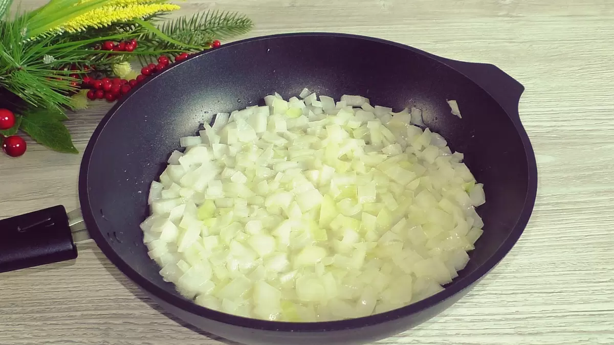 Вначале обжаривают нарезанный лук на растительном масле до золотистого цвета. В это время куриную печенку следует мелко нарезать или измельчить любым удобным способом.