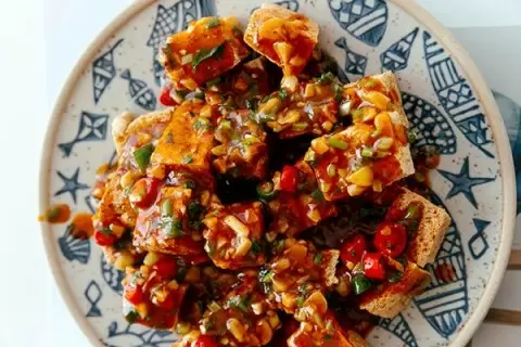 Некоторые могут воспринимать тофу как что-то приторное, но только до тех пор, пока не попробуют эти хрустящие кубики, которые, подобно губке, впитывают вкусный соус. Этот момент и становится настоящей кулинарной магией. Переплетение чеснока, остроты чили, зиры и уникального аромата специй transformируют тофу из обязательного блюда в настоящую кулинарную находку.