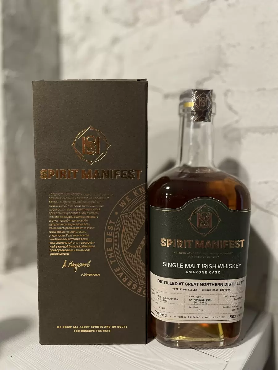 В мире ирландского виски случилось нечто уникальное: на российском рынке появился продукт независимого боттлера, который благодаря своей оригинальности привлек внимание ценителей крепких напитков. Встречайте Spirit Manifest Single Malt Irish Whiskey Amarone Cask – один из двенадцати интересных релизов, пропитанных душой ирландских традиций.