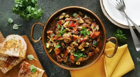 Выбор овощей для этого блюда достаточно широк; главное, чтобы в рецепте присутствовали спелые помидоры. Если же свежих помидоров под рукой нет, можно заменить их консервированными в собственном соку. Для придания яркости добавьте болгарские перцы или разнообразные черри — это украсит ваше блюдо и сделает его более аппетитным.