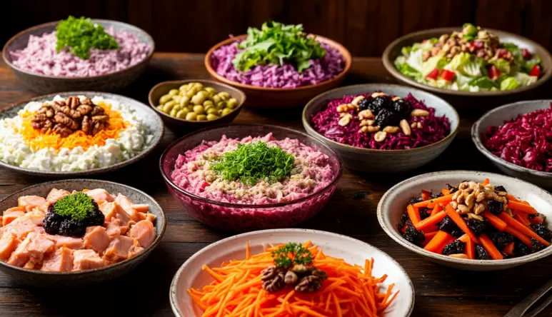Новый год — время встреч с близкими, когда за столом собираются дорогие сердцу люди. Чтобы подготовка к празднику не вызывала лишних трудностей, оптимальным решением станут салаты из нашей подборки. Здесь собраны простые рецепты с доступными ингредиентами, которые подойдут как для сытного ужина, так и для легкого перекуса. Каждый из этих салатов уже успел завоевать популярность на множестве новогодних столов.