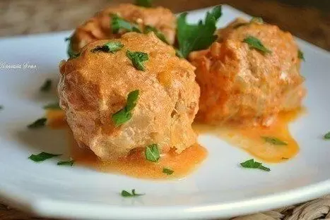 Капусту нарезать тонкими квадратами, а морковь натереть на крупной терке. После этого соединить их с фаршем и яйцами, тщательно перемешать.В отдельной миске смешать томатную пасту и сметану, добавляя воду для получения нужной консистенции. Затем приправить солью и перцем по вкусу.Из полученной фаршевой массы сформировать небольшие шарики, размером с мандарин. Выложить их в сковороду и залить приготовленным соусом. Тушить на медленном огне в течение 20–25 минут.Это простое и вкусное блюдо отлично подходит как для буднего ужина, так и для семейного застолья. Приятного аппетита!