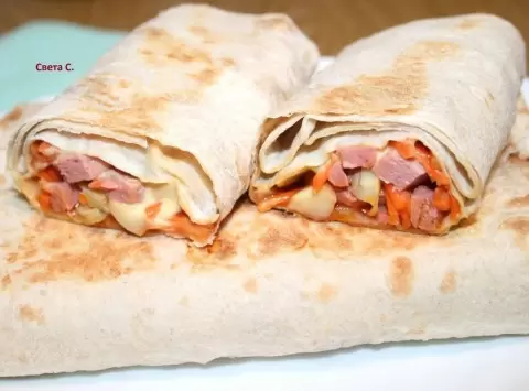Приготовление шаурмы с колбасой и грибами занимает всего несколько минут, что делает ее отличным вариантом для завтрака или перекуса. Это просто, быстро и очень вкусно!