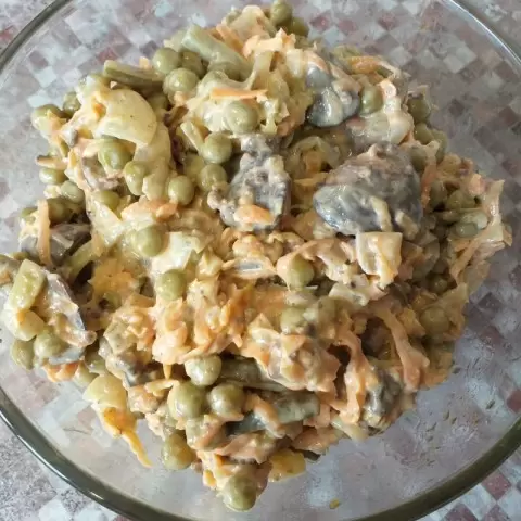 На полках супермаркетов куриная печень доступна в достатке, а сочные горошек и хрустящие огурцы придают салату уникальный аромат и текстуру.